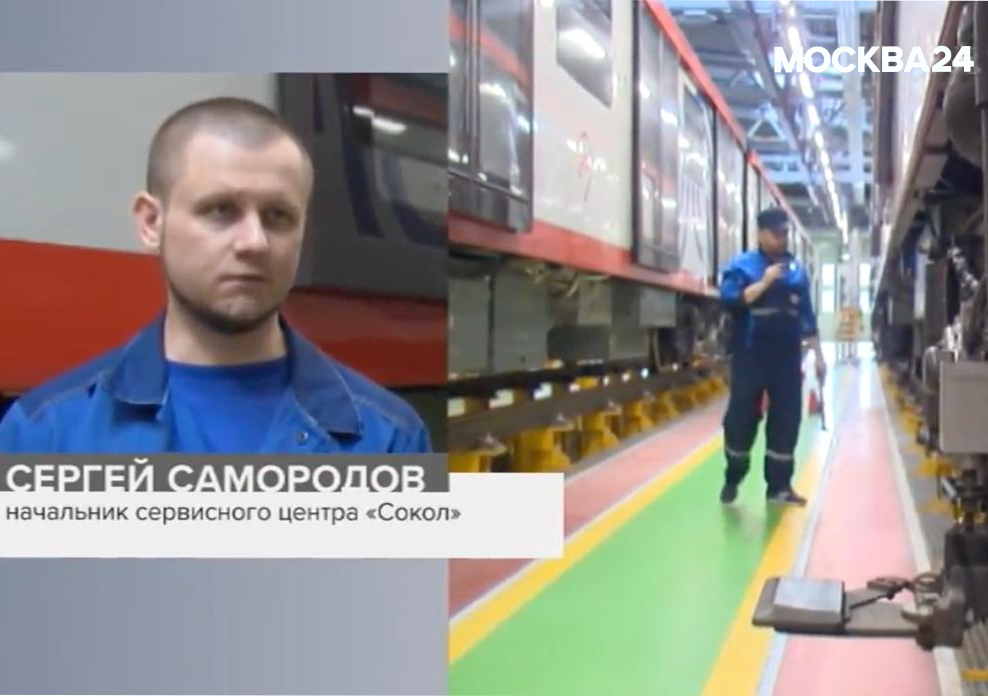 На телеканале «Москва 24» об обслуживании подвижного состава рассказывает начальник Сервисного центра в электродепо «Сокол».